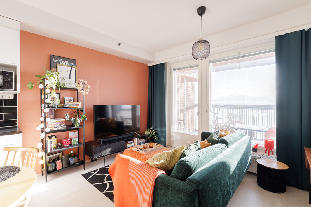 Tämä on kulmahoneisto eli naapuri on vain yhden seinän takana.