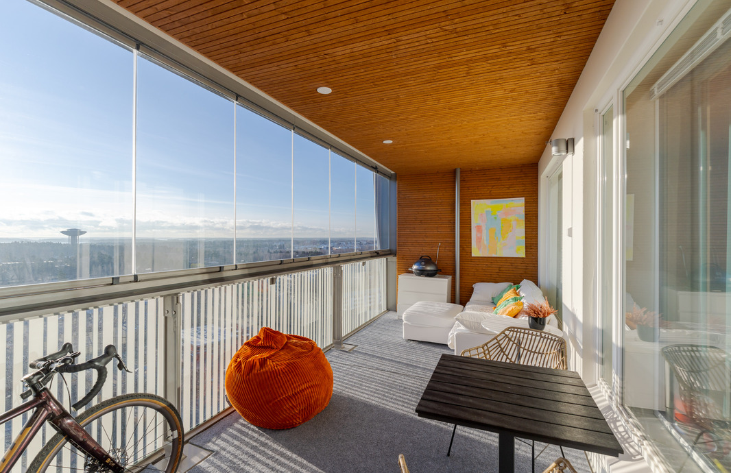 Tämän kodin hurmaa maisema ja iso koko huoneiston levyinen lasitettu parveke. Parveke toimii ihanana kesähuoneena ja sieltä avautuu maisema kauas merelle ja voit seurata laivojen kulkua.