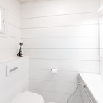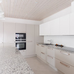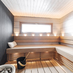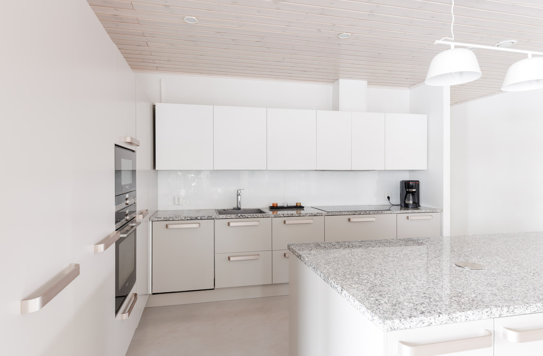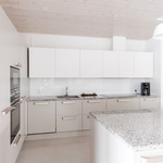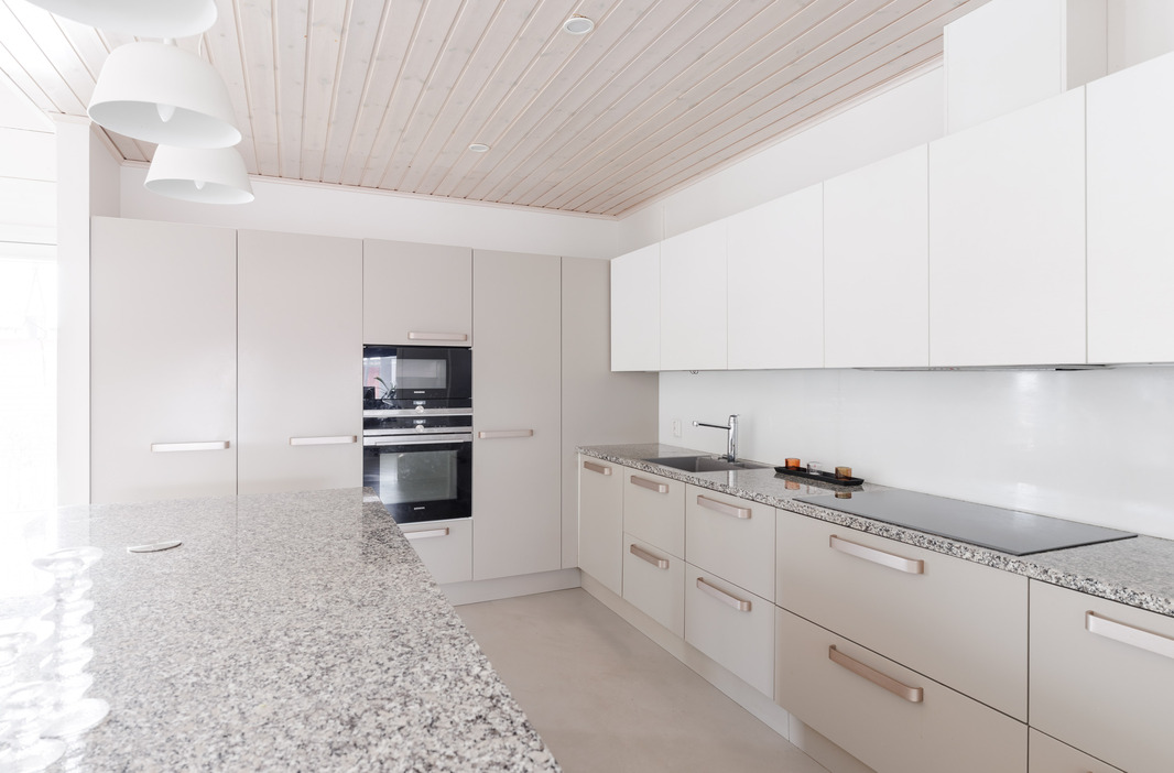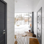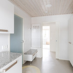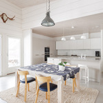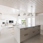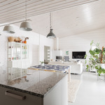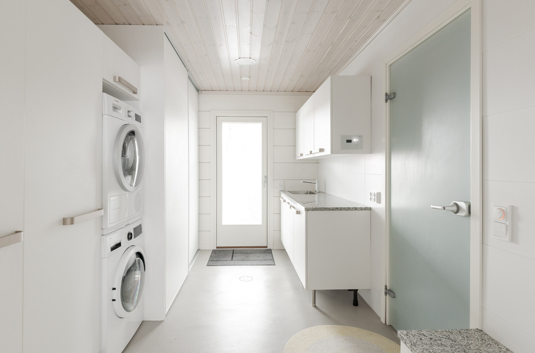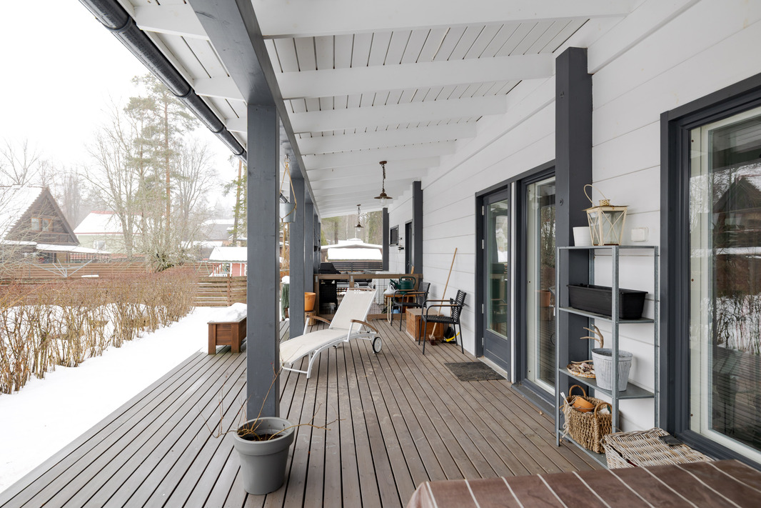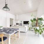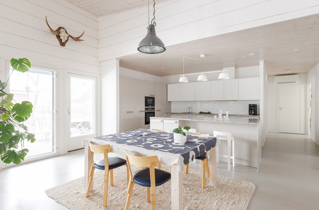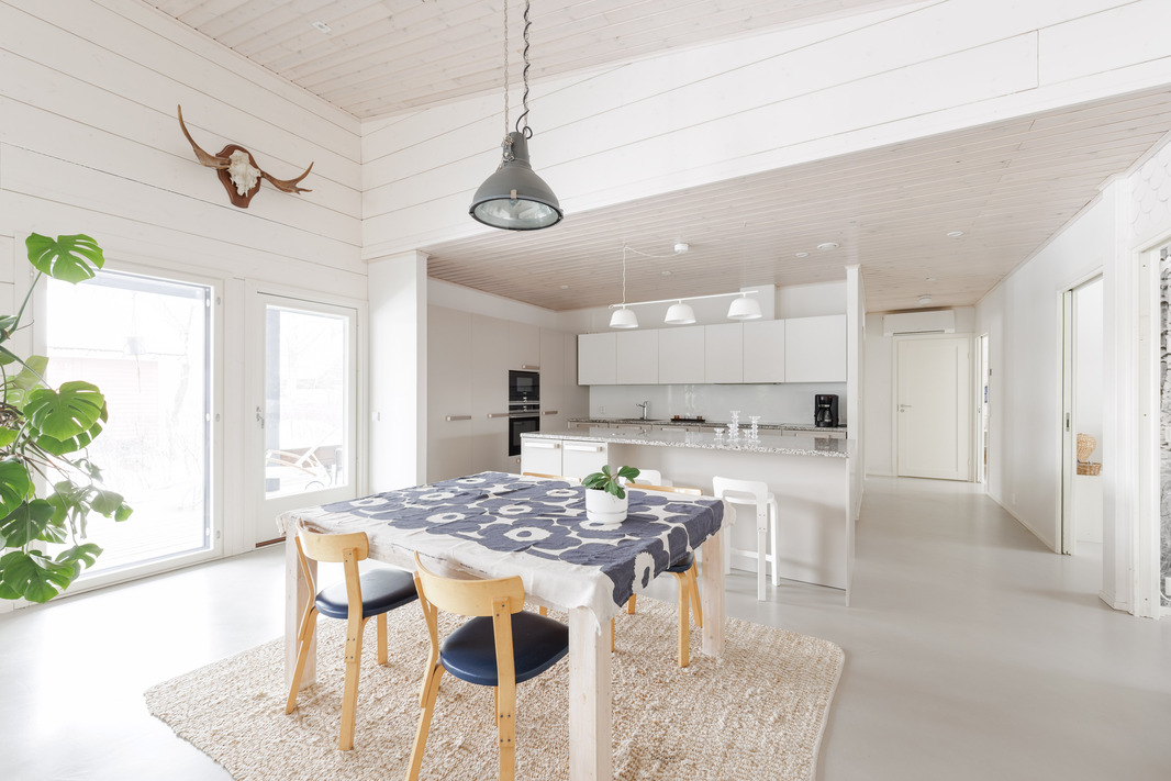 Tässä kodissa yhdistyvät arjen sujuvuus ja estetiikka. Iso avokeittiö-olohuone on monen perheen mieleen ja pienemmät makuuhuoneet aukeavat tähän. Pienten lasten kanssa helppoa elämää, keittiöstä näkee mitä tapahtuu ja lisäksi auton saa oven eteen autokatokseen. Olohuoneesta on käynti isolle katetulle terasille ja saunaosastosta/kodinhoitohuoneesta pääsee myös terassille.
