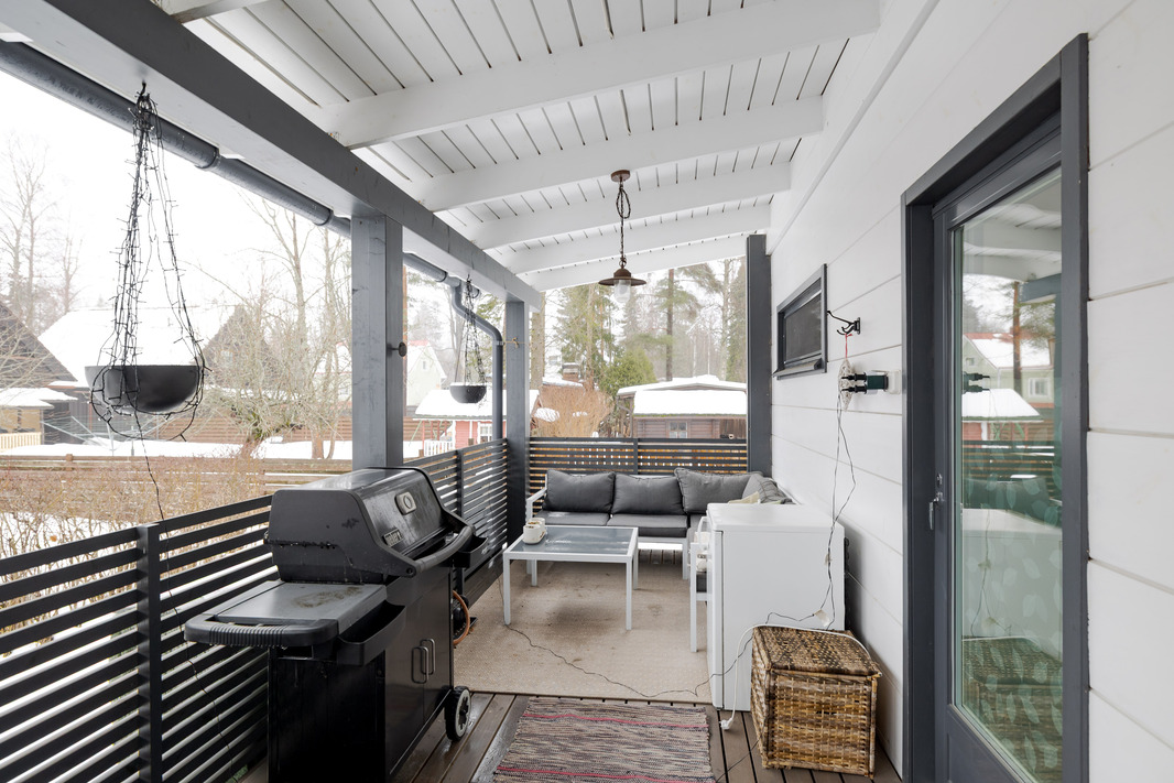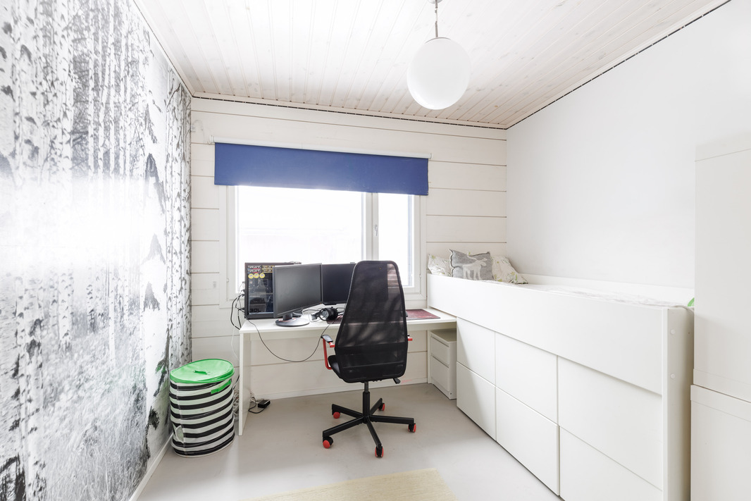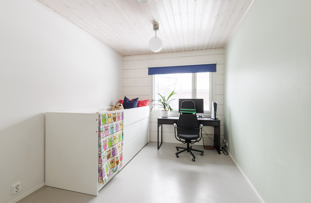 Makuuhuoneita on yhteensä 4. Isoin päämakuuhuone sijaitsee talon rauhallisimmassa kulmassa lähellä peseytymistiloja. Moderni talo on energiatehokas ja lämpiää maalämmöllä. Koko talossa on vesikiertoinen lattialämmitys. Lisäksi järjestelmässä on jäähdytystoiminto kesän helteille. Talvellla tunnelmaa ja lisälämpöä tuo varaavatakka. Talo on valmistunut 2017.